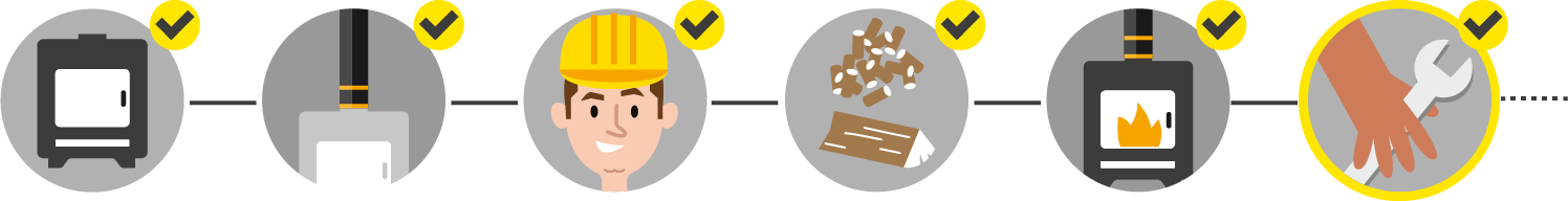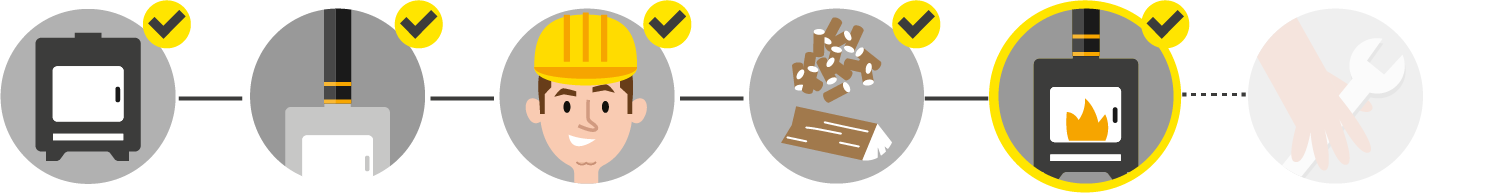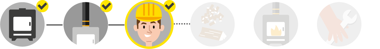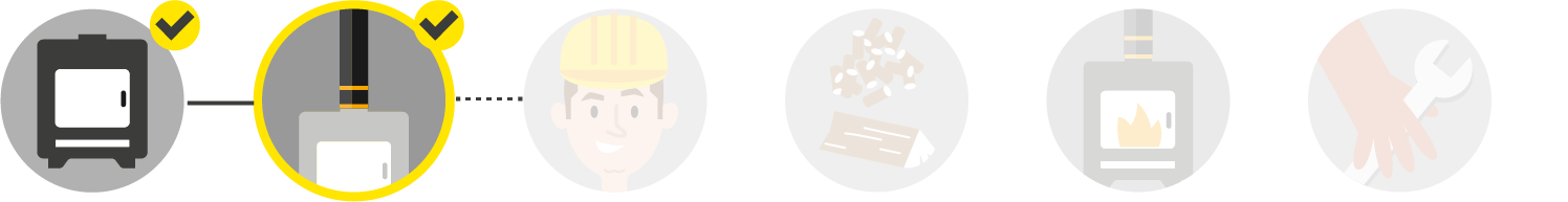 Habiendo estado ya previamente a mi lado para asesorarme en mi proyecto, mi instalador certificado está nuevamente presente durante la instalación completa «aparato + conducto de humos + chimenea» y la puesta en marcha del sistema.